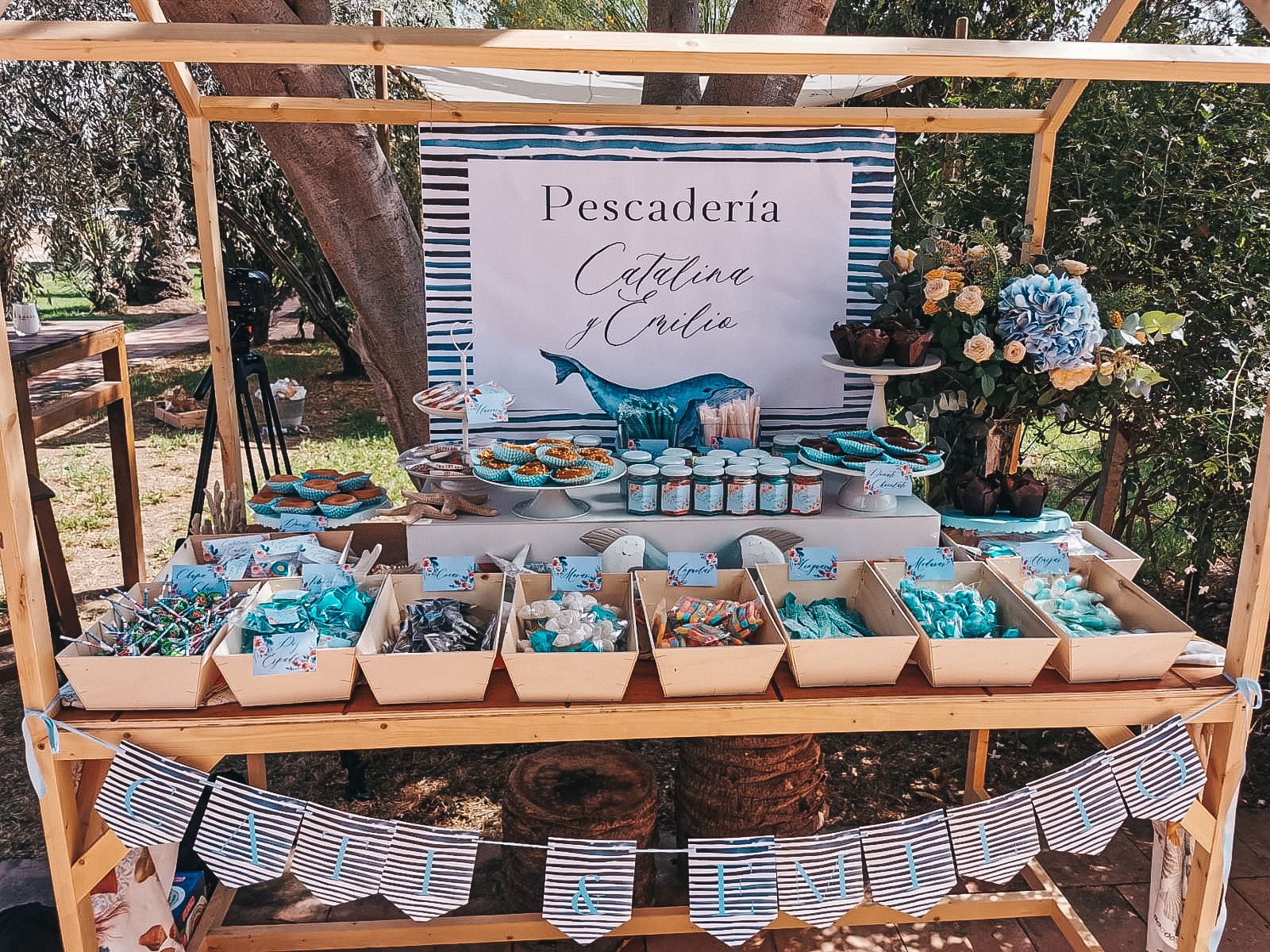 Una boda de aires marineros, inspirada en el mar, con una mesa dulce simulando una pescadería… ¡No nos pudo gustar más el resultado!